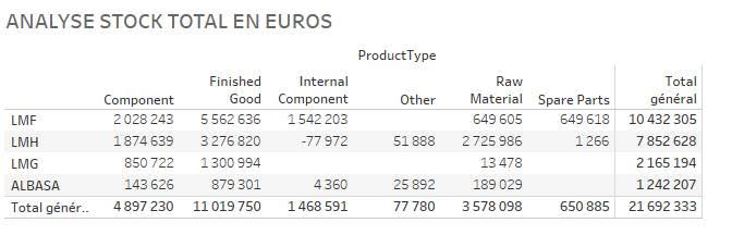 ⇒ All Finished Products with a view SKU x Customer ⇒ 894 Finished Products